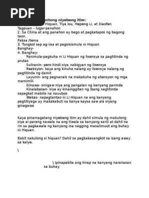 Naging mas mabenta kasi ang paninda ni Huiquan dahil nakaisip siya ng kakaibang paraan upang makahikayat ng bibili. 2 4 Niyebeng Itim Docx Banghay Aralin Filipino Grado 9 Ikalawang Markahan Aralin 2 4 Panitikan Maikling Kuwento China Teksto Niyebeng Itim Ni Liu Heng Course Hero. See posts photos and more on Facebook.