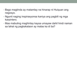 Banghay-Panimula-pagkuha ni Li Hiquan ng lisensya sa pagtitinda ng prutas Suliranin- pero hindi siya nabigyan ng. Sinabihan na siya ni Tiya Luo na sapat na. NYEBENG ITIM Ni Liu Heng Isinalin sa Filipino ni Galileo S.
